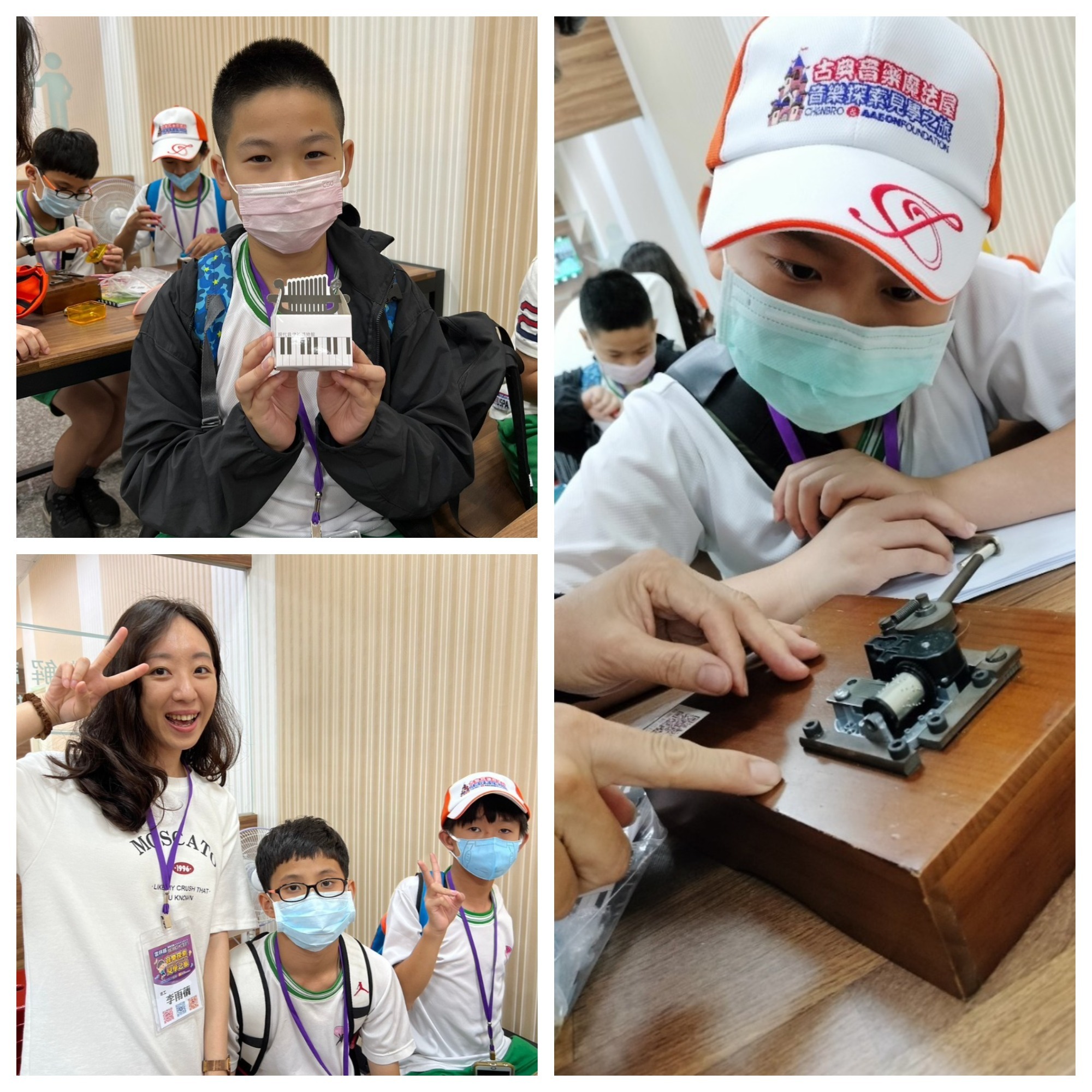 在下一站的台湾现代音乐铃博物馆则是近距离感受到音乐铃的差异及演进,原来音乐盒的音色音质会受到构造与木头影响而产生差异。小朋友们在了解音乐盒的原理后还能自己手动组装,带着属于自己的音乐盒回家,脸上都泛起大大的笑容!