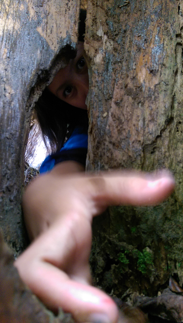 突然有一隻手從洞口伸出來想要抓我,凶狠的模樣把我嚇倒了。
